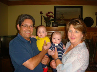 Their God mother, Cindy Tollefson, (aka Mama Tollie) obviously has this 'twin thing' down by juggling both boys! She is also one of my sister Sales Directors! Special night for sure! |